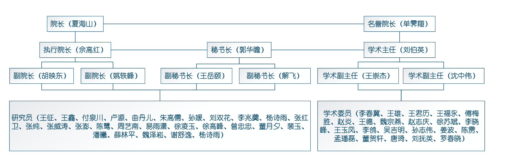 成人直播 交通文化及遗产保护研究院挂靠成人直播 管理,夏海山担任院长,单霁翔任名誉院长,刘伯英、王崇杰、沈中伟等任学术主任和副主任,现有研究成员31人,学术委员22人。组织架构如下: